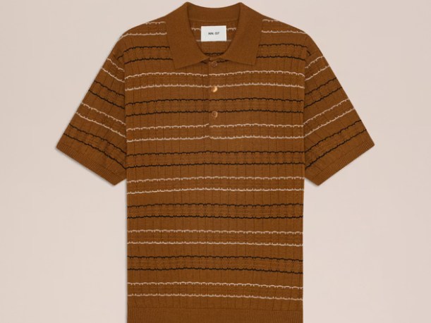 Alfie - Pointelle Stitch polo:Lightweight striped polo made from wool blend, featuring a pointelle stitch for a soft and breathable finish. Detailed with elegant river shell buttons.