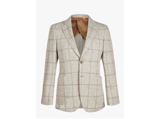 Ive been fortunate to be represented in Japan for nearly the full 40 years that my brand has been in existence. I have a real fondness for the country I was there earlier this season to appear at a department store in Tokyo. My partners there produce beautiful clothing and we bring a few pieces into the UK to compliment our own range. This melange check is my favourite. Its super soft, with a little stretch, and mainly unlined so breathes to keep you cool. Its made from a 87% wool/37% polyester fabric thats woven in Japan and very relaxed. The outside top pocket lining pulls up to turn into a pocket square. Neat.